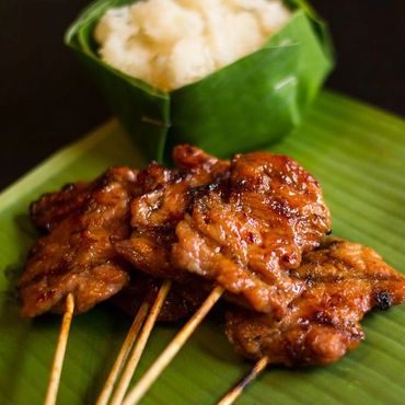 Grilled chicken with peanut sauce on the side.